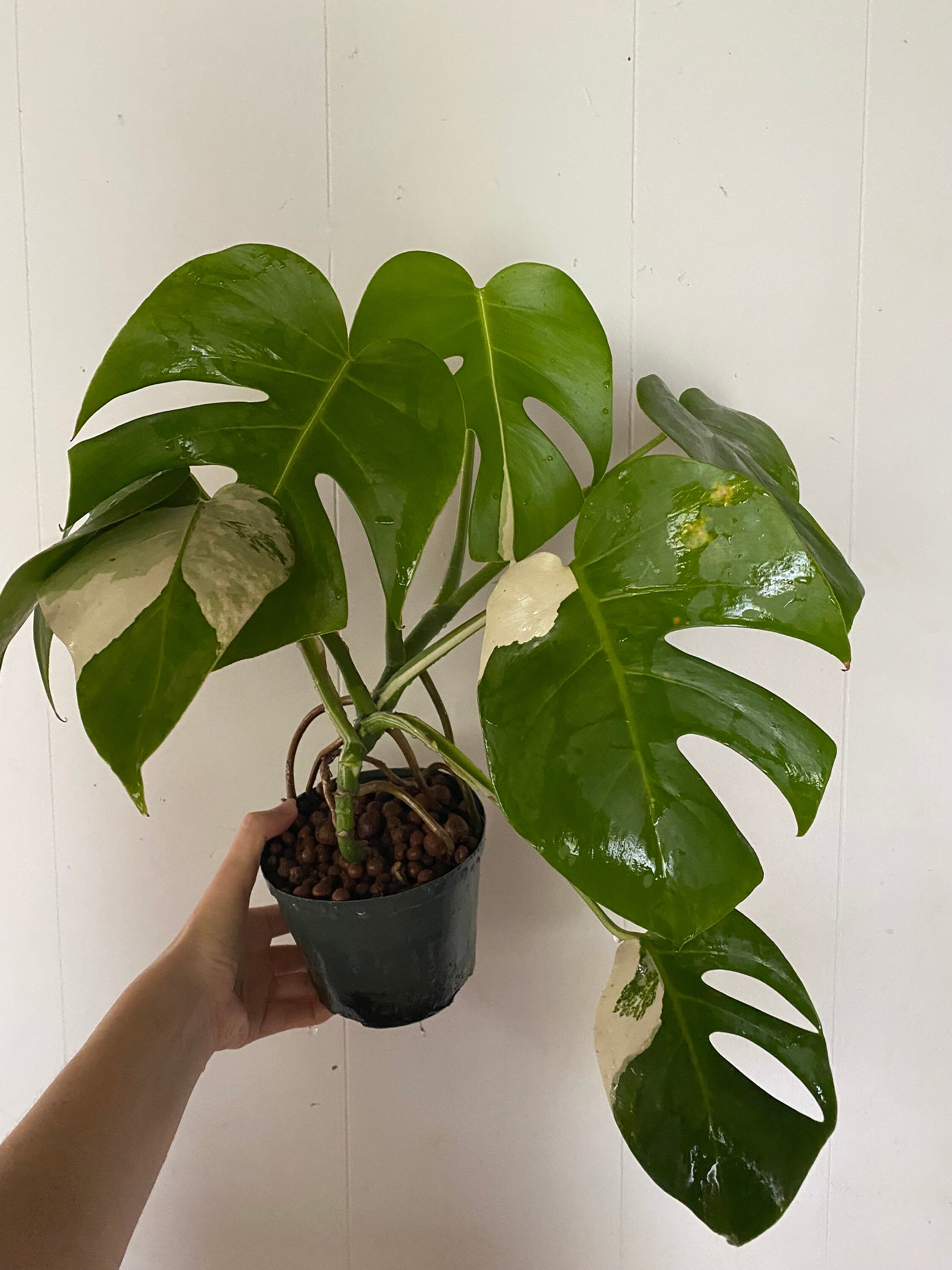 Rooted Variegated Monstera Plant White Albo With 6 Leaves Etsy